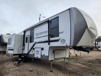 Sleeps 4 Slides 3 Length 33 ft 11 in Ext Width 8 ft Ext Height 13 ft 5 in Hitch Weight 1871 lbs Dry Weight 9380 lbs Cargo Capacity 2691 lbs Fresh Water Capacity 57 gals Grey Water Capacity 60 gals Black Water Capacity 32 gals Available Beds Custom King Refrigerator Type 12V Refrigerator Size 16 cu ft Cooktop Burners 3 Number of Awnings 1 Water Heater Type On Demand Tankless AC BTU 33000 btu TV Info LR 50" LED Smart TV Awning Info 13' with LED Lights Axle Count 2 Washer/Dryer Available Yes Shower Type Walk-In Shower Electrical Service 50 amp Similar Fifth Wheel Floorplans