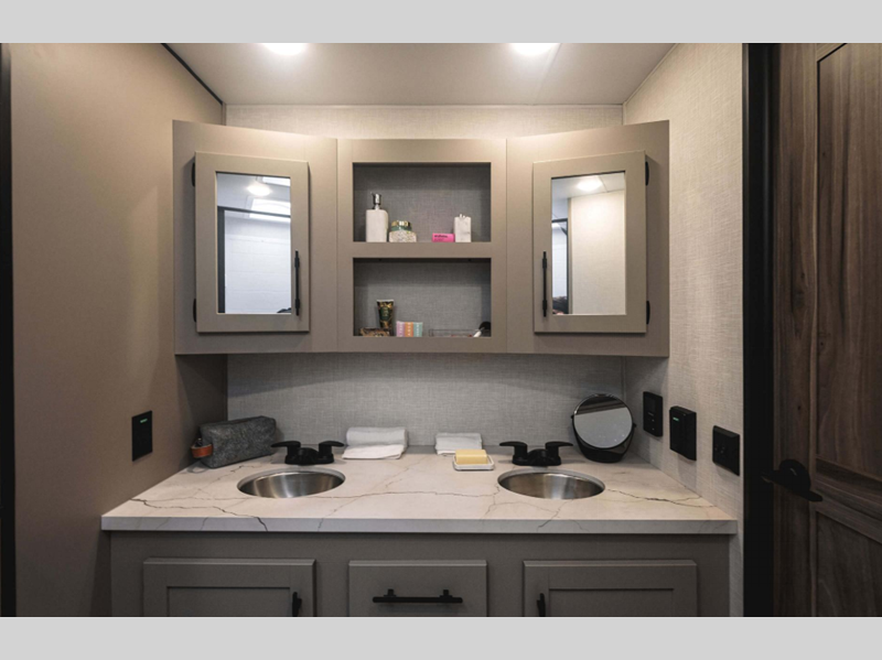 - Exterior Docking Station: Black Tank Flush, Fresh Tank Fill, Pressure Fill, Outside Shower & Cable Hookups