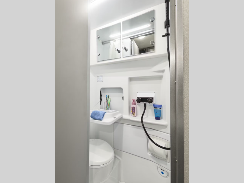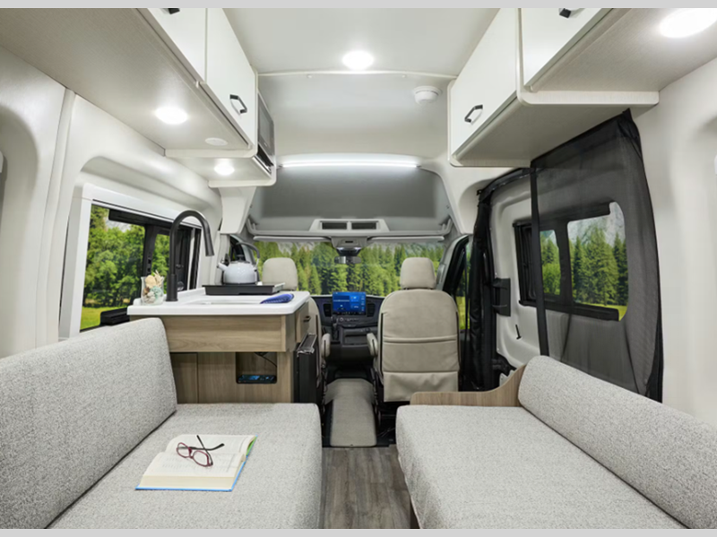 Sleeps 4 Length 20 ft 5 in Ext Width 8 ft 1 in Ext Height 10 ft 2 in Int Height 6 ft 7 in Interior Color Alpine White II, Charcoal Fusion II Exterior Color Avalanche Grey, Carbonized Grey, Oxford White Hitch Weight 6000 lbs GVWR 9500 lbs Fresh Water Capacity 20 gals Grey Water Capacity 20 gals Black Water Capacity 4.75 gals Tire Size 30.5" Furnace BTU 14300 btu Fuel Type Gasoline Engine 3.5L V6 Chassis Ford Transit Trail AWD Horsepower 310 hp Fuel Capacity 31 gals Wheelbase 148 in Torque 400 ft-lb Refrigerator Type Single Door 12V Electric Cooktop Burners 1 Number of Awnings 1 LP Tank Capacity 24.7 lbs Water Heater Capacity 2.64 gal Water Heater Type Truma Combi Eco AC BTU 11000 btu Awning Info 10' Thule Lateral Arm w/ Integrated LED Lighting Gross Combined Weight 12600 lbs Shower Type Wet/Bath Shower Electrical Service 30 amp Similar Floorplans
