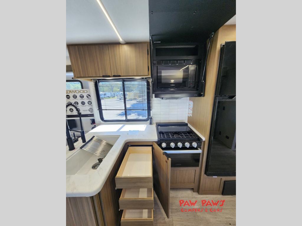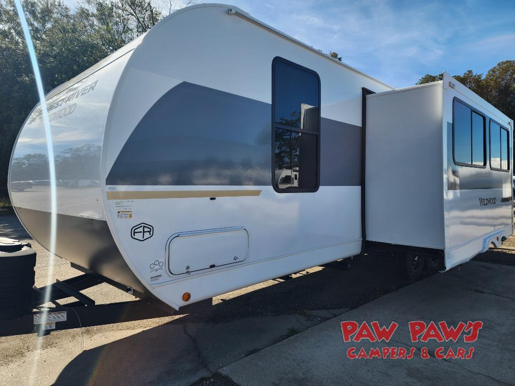 The Wildwood travel trailers are packed with hassle-free camping amenities! There are a variety of floorplans to choose from between three different regions. The heated and enclosed Accessibelly will help protect against the elements and debris during transport, and the fiberglass exterior is sure to be eye-catching! There are stylish roller shades inside, along with updated backsplash, elegant curtain rods and curtains, plus many more interior comforts! Choose a Wildwood travel trailer today for quality and value!