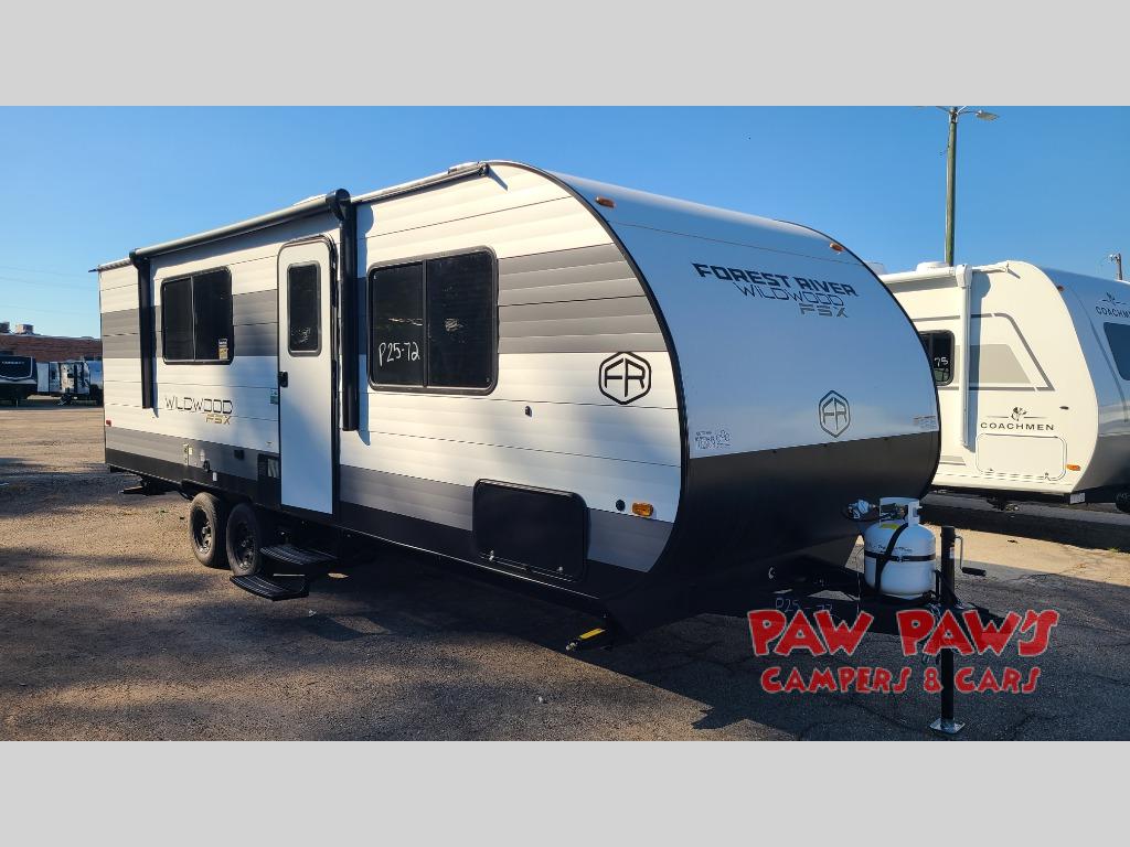 The Forest River Wildwood FSX travel trailer and toy haulers are easy to tow and easy to love, so come take a look! With each model you'll appreciate the 20K BTU furnace and 13,500 BTU A/C to keep you comfortable year around, and the large windows will make the whole unit seem bright and open. The EZ entrance includes an XL folding grab assist handle, and the power awning with LED lights provide an outdoor living space you are sure to love. The lightweight Wildwood FSX travel trailers and toy haulers are your ticket to the great outdoors. Choose yours today!