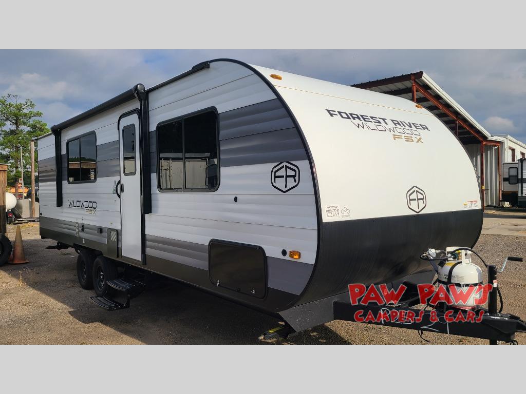 The Forest River Wildwood FSX travel trailer and toy haulers are easy to tow and easy to love, so come take a look! With each model you'll appreciate the 20K BTU furnace and 13,500 BTU A/C to keep you comfortable year around, and the large windows will make the whole unit seem bright and open. The EZ entrance includes an XL folding grab assist handle, and the power awning with LED lights provide an outdoor living space you are sure to love. The lightweight Wildwood FSX travel trailers and toy haulers are your ticket to the great outdoors. Choose yours today!