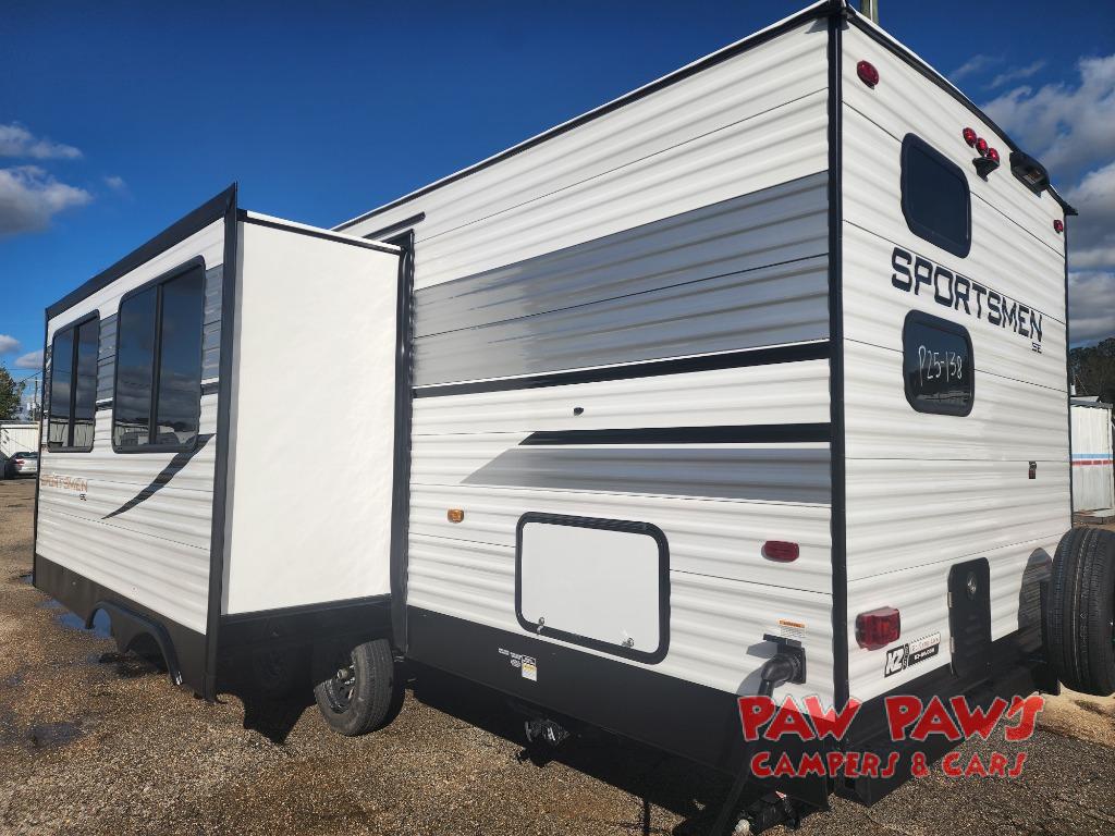 Each Sportsmen SE travel trailer and toy hauler by KZ is constructed with KZ exclusive tough shield exterior metal, a one-piece seamless walk-on Tufflex roofing material, and diamond plate rock guard to protect your unit from road debris. You will appreciate the extra large baggage doors for stowing away your gear when not in use, and tinted windows to help keep the harmful sun rays out plus keeping it cooler inside. Some of the exterior conveniences found in the mandatory Advantage Package are the solid folding steps with a large folding grab handle for easy entry and exit, a full glass friction hinged entry door, plus an exterior shower for your pets or to rinse off before you head inside. You'll also appreciate the nitrogen-filled tires, solar and backup camera prep, plus a Leash Latch with a bonus beverage opener. You'll feel right at home inside with linoleum flooring throughout, a 13,500 BTU air conditioner, large overhead cabinets, a shower surround, and much more!