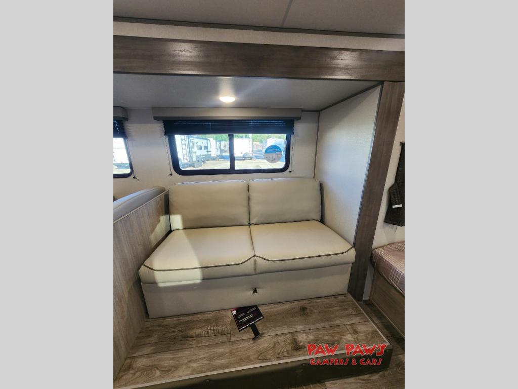 This travel trailer will be the best RV vehicle for you. Built to offer the ultimate comfort, this unit has a 60” jack-knife where you will be able to rest like royalty due to its undeniable comfort and the spacious queen bed will make it hard to wake up in the morning. The 38” dinette is the perfect feature for enjoying all your delicious meals prepared in the convenient kitchen which boasts a microwave, refrigerator, two-burner cooktop, sink and pantry storage. At the end of the day, relax in the incredible full bathroom featuring a 24” x 36” tub/shower, ideal for taking care of yourself.