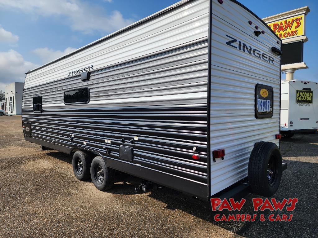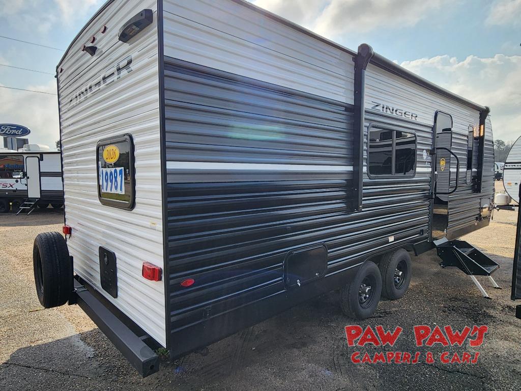 Are you ready for the best camping experience you've had yet? This Zinger Lite travel trailer sleeps eight to nine people, ensuring family memories that will last for years! You'll enjoy a front bedroom with an RV queen bed and shirt closets on either side for your clothes. The kids or your guests are going to love the bunk beds they can climb into after a day of swimming or hiking. Spend time with loved ones as you visit on the sofa or play a game on the 38" booth dinette. This travel trailer has a rear corner bath providing extra privacy everyone will enjoy.