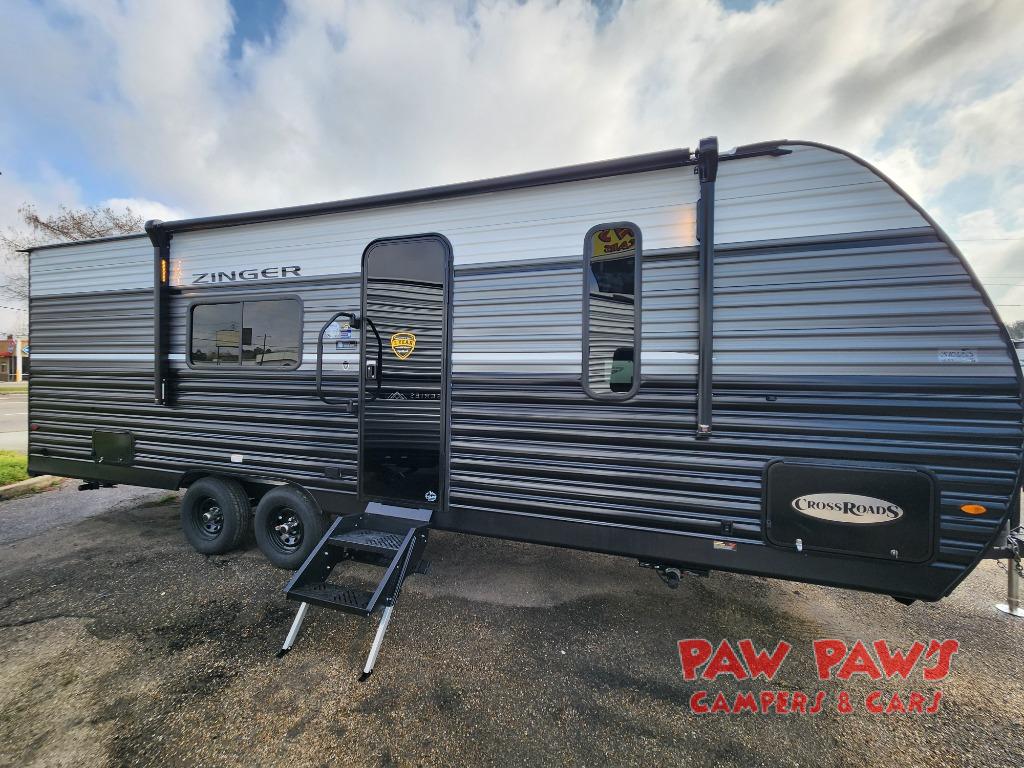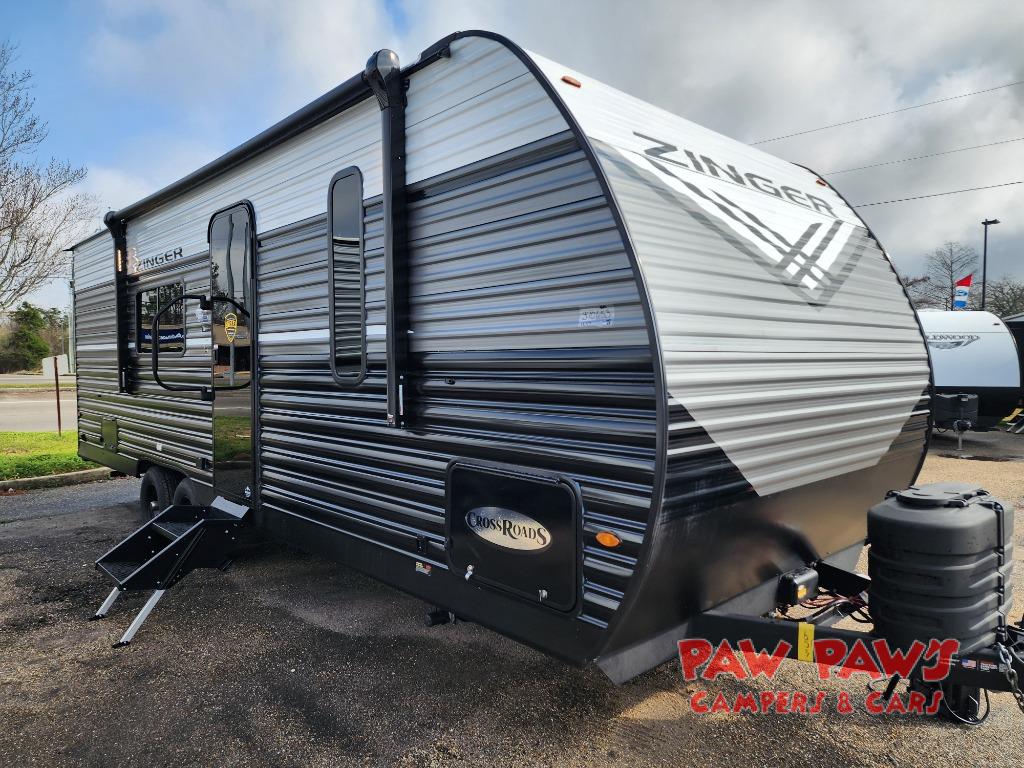Join the CrossRoads family with a Zinger Lite travel trailer! You'll enjoy an abundance of standard features you would usually find with higher priced travel trailers. Each model features a Super Flex Alpha Roof and front diamond plate for added strength and durability. There is also an electric awning outdoors, along with pass-through storage, rear ladder prep, and a tankless on-demand water heater for added convenience. The interior features pleated shades/mini blinds/fabric window treatments, a 12V refrigerator, comfortable seating and seating spaces, plus plenty of storage for your personal belongings and camp gear!