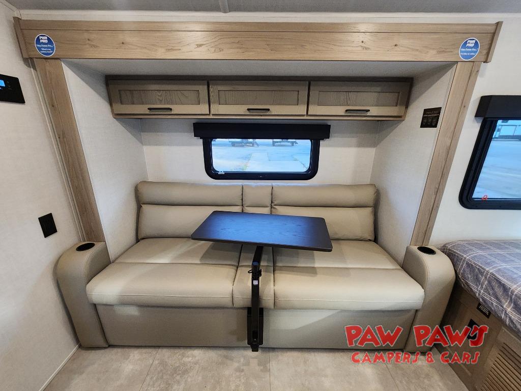 This is the perfect couple's trailer, so sneak away for a weekend in the woods. There is a 72" sofa with cupholders with a table that will be perfect for meals times and relaxing. This model includes a 12V TV to keep you busy on those rainy days, and the queen bed will provide a great night's rest. This model also include an 11' power awning so you can enjoy those nice days outdoors!