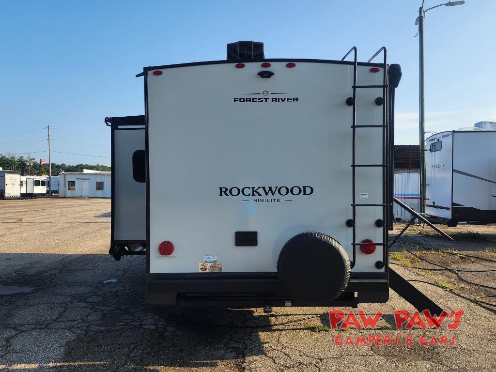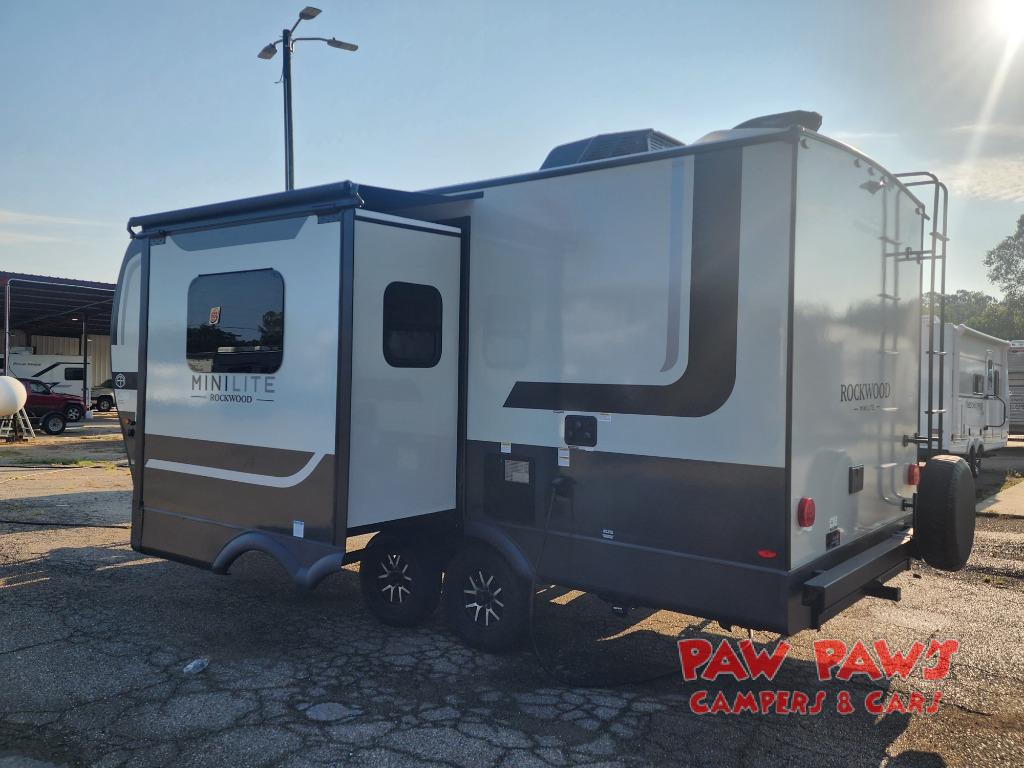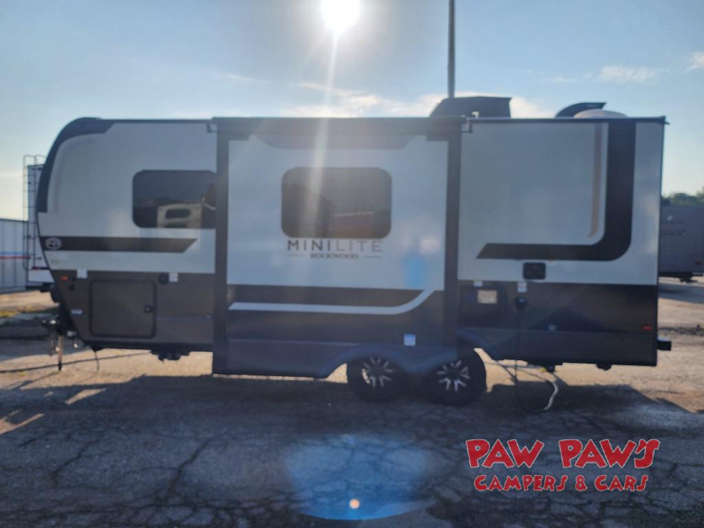 Each Rockwood Mini Lite travel trailer by Forest River is constructed with a fully laminated one-piece walkable roof, sleek frameless windows, and a six-sided full aluminum frame for strength and durability. The 12V thermostatically controlled heated tanks, plus radiant foil in the underbelly will allow you to camp well into the colder months, and the 200W roof solar panel will be perfect for a little off-gridding. Each model includes solid surface kitchen countertops, hidden hinge cabinet doors, roller shades, plus many more interior features. Having an AIR 360+ omnidirectional antenna with WiFi prep on board gives you the option to get some work done if it's needed, and the power tongue jack provides hassle-free set up, so you can enjoy more time relaxing!