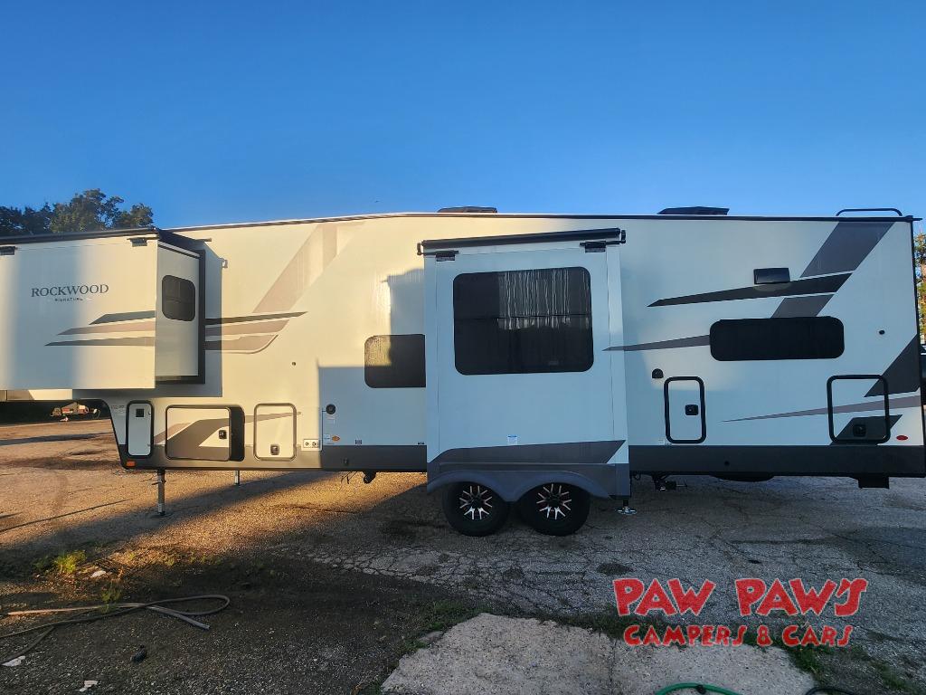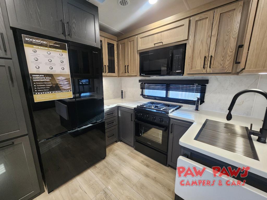 With any Rockwood Signature fifth wheel or travel trailer by Forest River RV, you will enjoy superior construction that includes a fully laminated walkable roof, 6-sided full-aluminum frame, and a painted fiberglass front cap with Clear Coat for added durability. Outside, you'll find a 200W solar panel for off-grid capabilities, slam baggage doors, and Key-Alike lock system for added convenience. Head inside to find soft close roller bearing drawers, roller shades, and residential style gas range. These travel trailer and fifth wheels also feature Goodyear Endurance tires with a tire pressure monitoring system plus Dexter Torflex torsion axles for smooth towing!