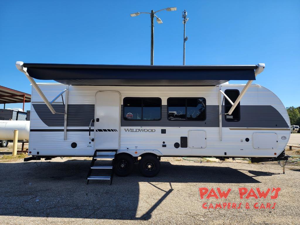 The Wildwood travel trailers are packed with hassle-free camping amenities! There are a variety of floorplans to choose from so you can find the layout that best fits your needs. The heated and enclosed Accessibelly will help protect against the elements and debris during transport, and the exterior retro/metal redesign is sure to be eye-catching! There are stylish roller shades inside, along with updated backsplash, elegant curtain rods and curtains, plus many more interior comforts! Choose a Wildwood travel trailer today for quality and value!
