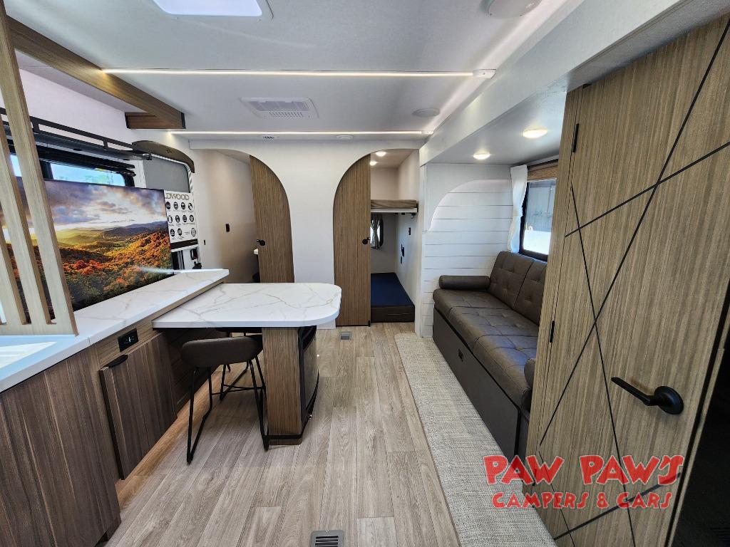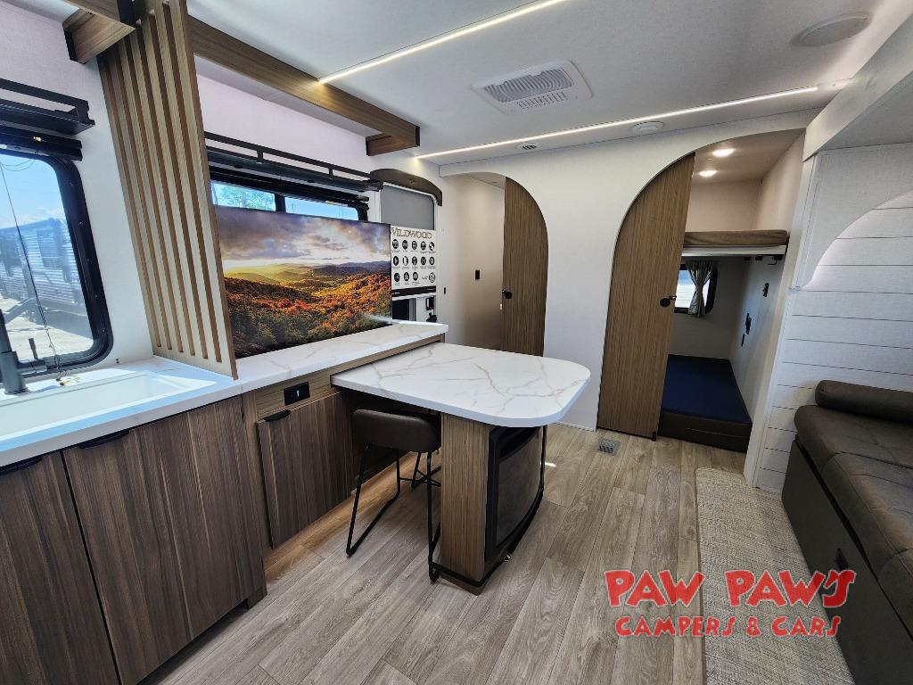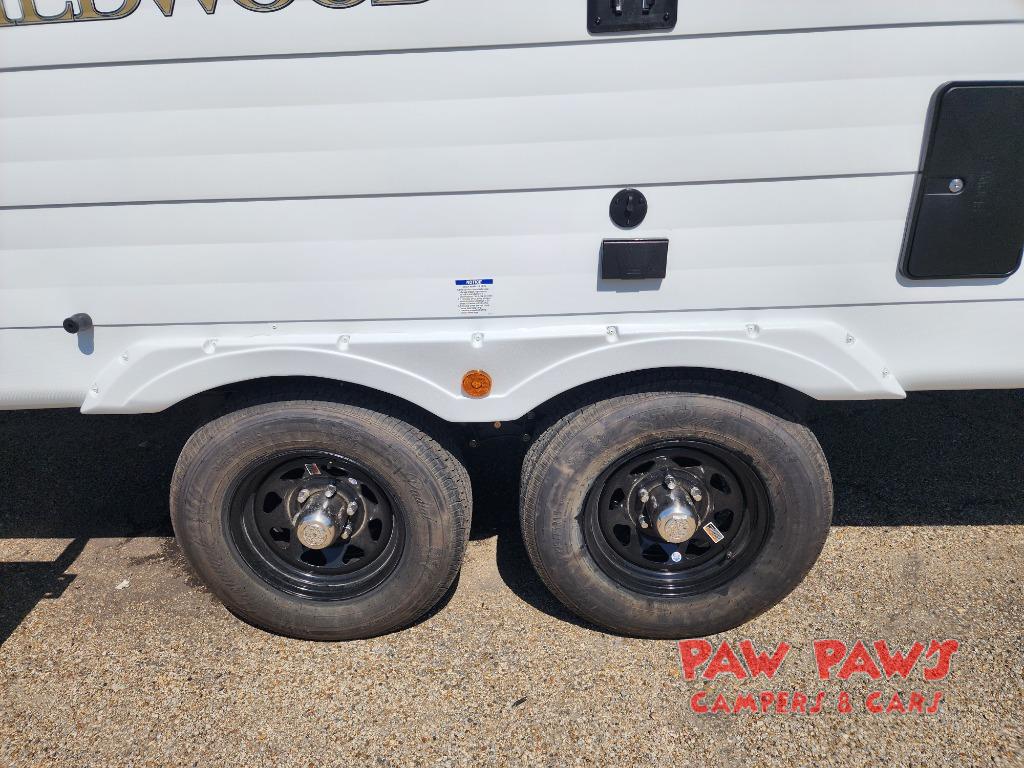 The Wildwood travel trailers are packed with hassle-free camping amenities! There are a variety of floorplans to choose from so you can find the layout that best fits your needs. The heated and enclosed Accessibelly will help protect against the elements and debris during transport, and the exterior retro/metal redesign is sure to be eye-catching! There are stylish roller shades inside, along with updated backsplash, elegant curtain rods and curtains, plus many more interior comforts! Choose a Wildwood travel trailer today for quality and value!