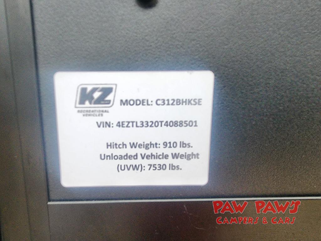 KZ Connect SE travel trailer C312BHKSE highlights: