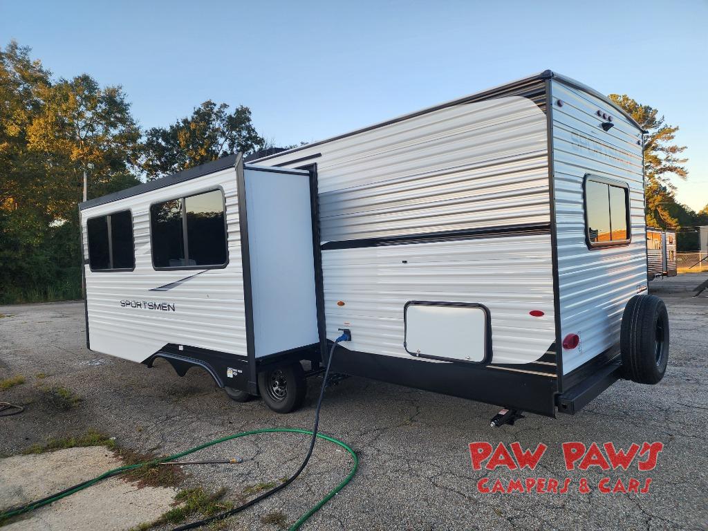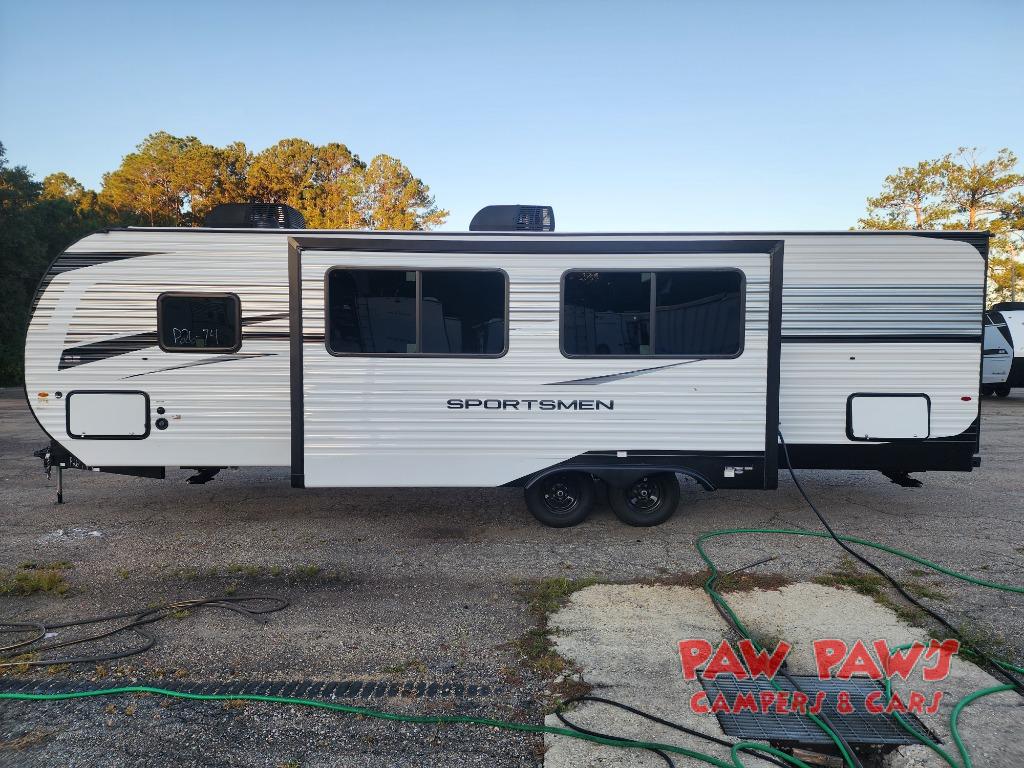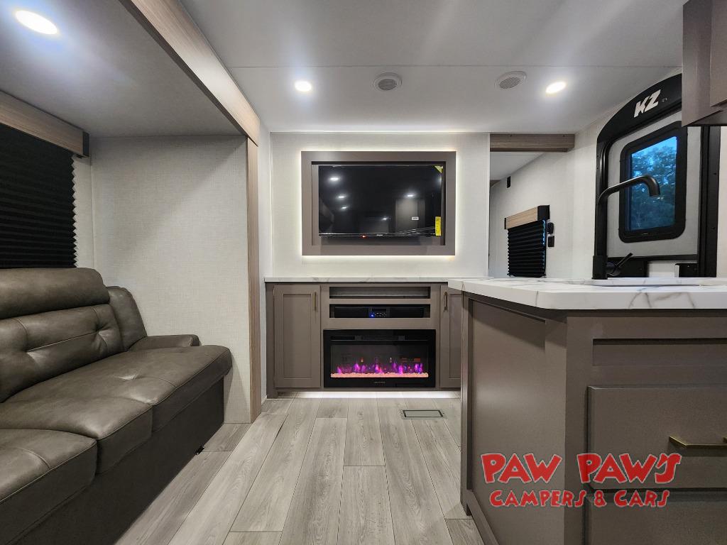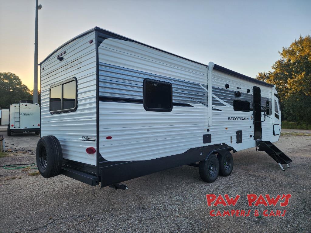 Each Sportsmen SE travel trailer and toy hauler by KZ is constructed with KZ exclusive tough shield exterior metal, a one-piece seamless walk-on Tufflex roofing material, and diamond plate rock guard to protect your unit from road debris. You will appreciate the extra large baggage doors for stowing away your gear when not in use, and tinted windows to help keep the harmful sun rays out plus keeping it cooler inside. Some of the exterior conveniences found in the mandatory Advantage Package are the solid folding steps with a large folding grab handle for easy entry and exit, a full glass friction hinged entry door, plus an exterior shower for your pets or to rinse off before you head inside. You'll also appreciate the nitrogen-filled tires, solar and backup camera prep, plus a Leash Latch with a bonus beverage opener. You'll feel right at home inside with linoleum flooring throughout, a 13,500 BTU air conditioner, large overhead cabinets, a shower surround, and much more!