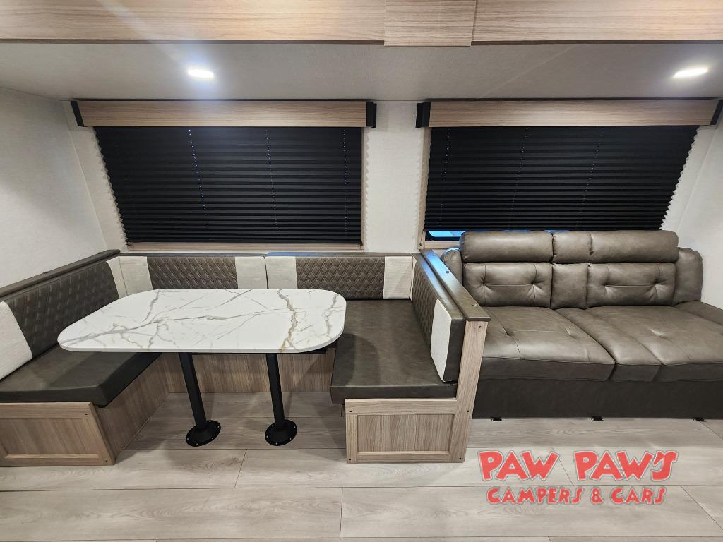 Wow! Take a look at this travel trailer with two private bedroom that include queen beds and space to store your clothes. Each room also has a TV mount if you choose to bring along your own television for late-night movies in bed. The main living area is spacious with the large slide out, and here you can relax on the sofa or around the U-shaped dinette. This model also includes a full bath with a 40" shower that will allow you to clean up each day.