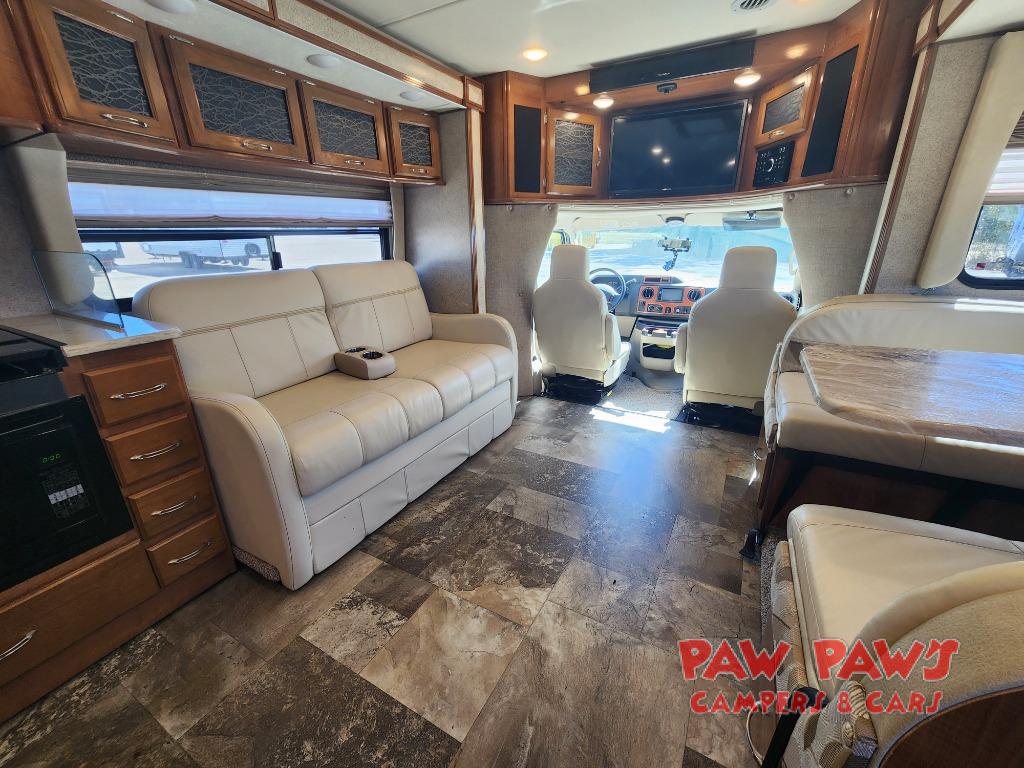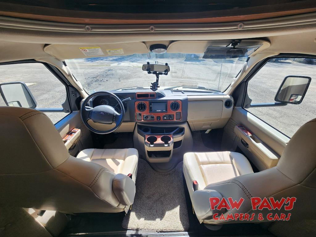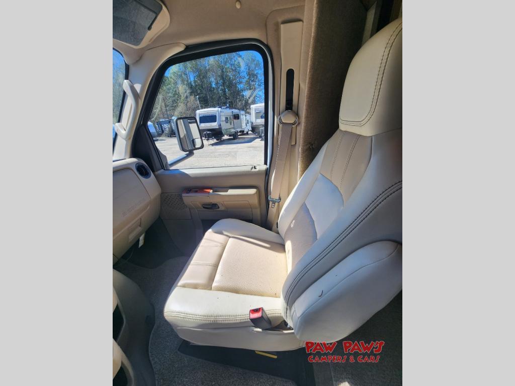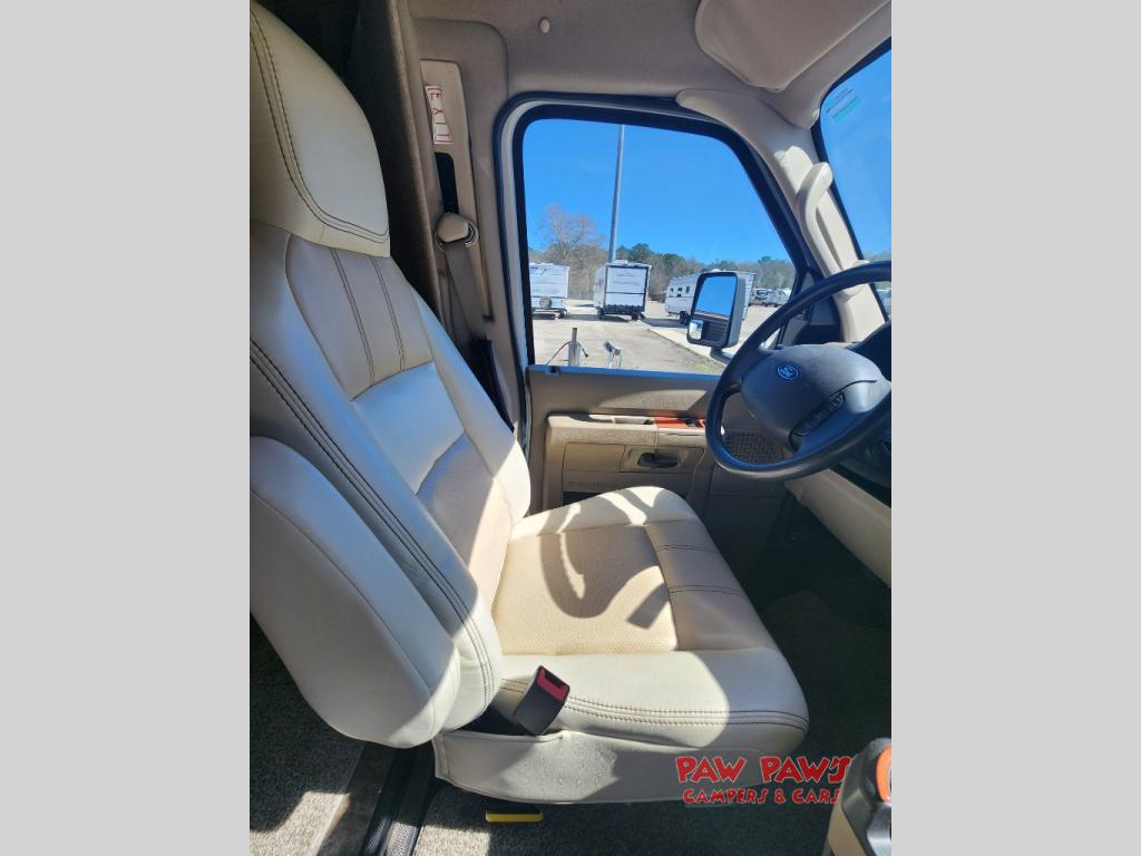 This Ford model offers optional swivel passenger and driver seats which is a nice feature when you are parked. The seats can easily become part of the living area up front. This unit is also available with a Chevy 4500 chassis and 6.0L engine. With the Chevy chassis you do not have the driver and passenger seat swivel option.