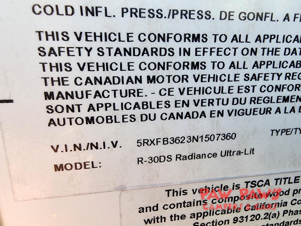 Used 2022 Cruiser Radiance Ultra Lite 30DS