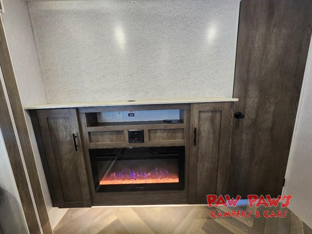 If you need a trailer that will enhance your family getaways, this Wildwood X-Lite travel trailer is it! Because of the double-size bunks in the back and the walk-around bed in the front private bedroom, your family can stretch out and sleep comfortably, and the Versa Lounge, which is made up of a U-shaped dinette and sofa, can also transform into extra sleeping space if needed. The whole family will enjoy how accessible the full bathroom is because it contains both an interior and exterior entry door, and the entertainment center with fireplace is certainly going to enrich your time spent indoors. Enjoy breakfast outdoors with the outside camp kitchen too!