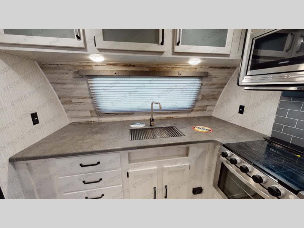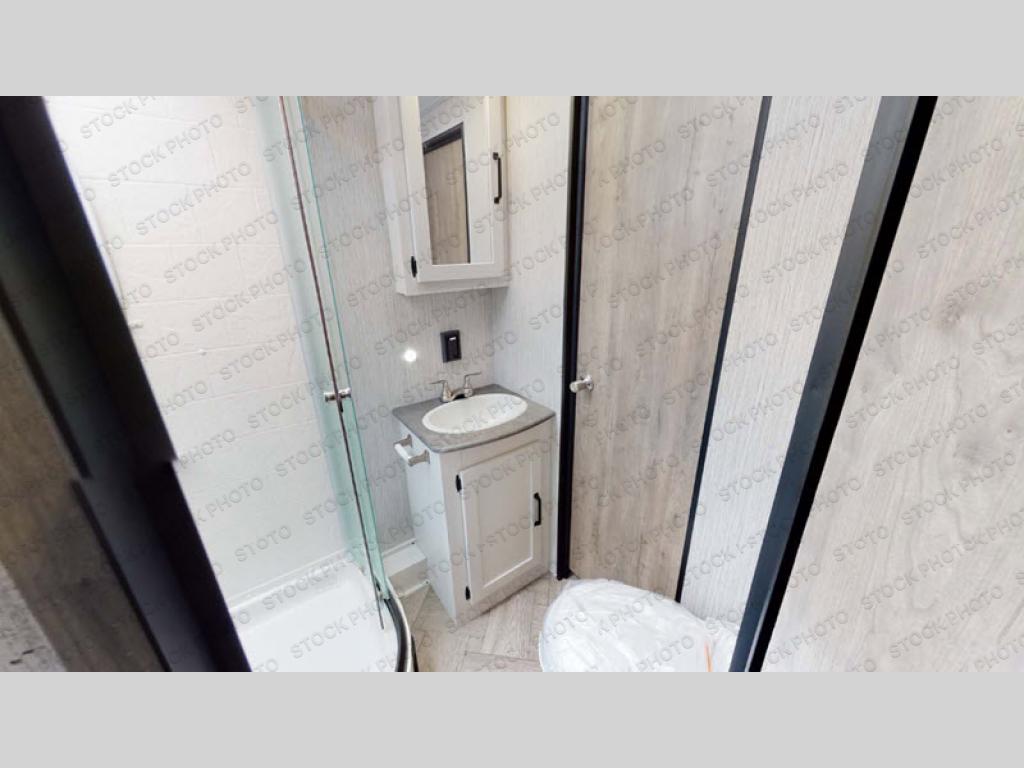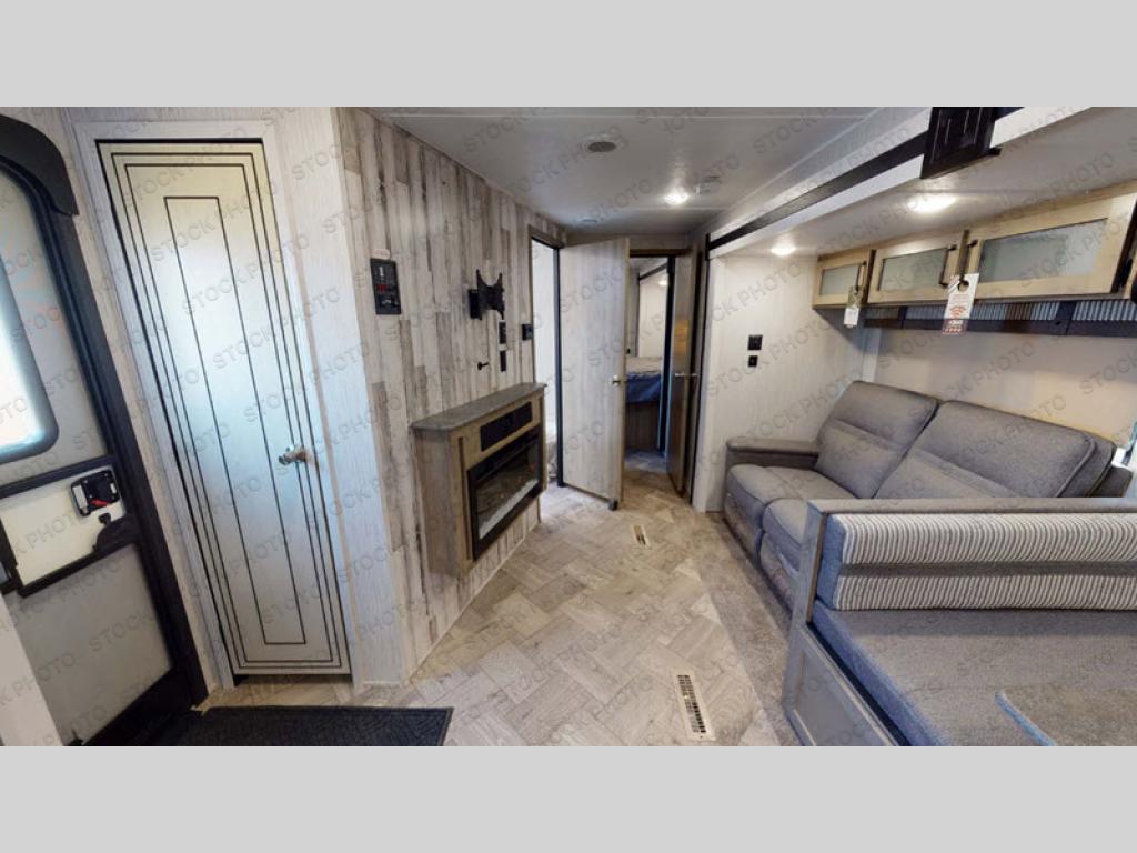 Walk into this travel trailer with one of the dual entry doors for a great camping trip! One entrance enters directly into the rear private bedroom which has a queen bed slide, a walk-in closet that is prepped for an optional washer and dryer, a wardrobe, and even an entrance into the dual entry bathroom. Grab a snack from the walk-in pantry then relax on the sofa while you watch a movie with the entertainment center or play a game at the booth dinette. The front kitchen has everything you will need to prepare your best home cooked meals including lots of countertop space, a three burner cooktop, and a residential refrigerator!